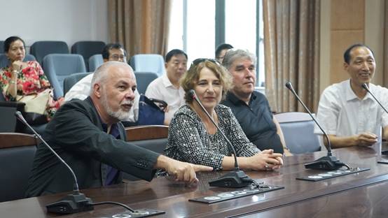 德国富克旺根艺术大学董事长一行首先到达板书训练与测试长廊,和飞董事长亲自为他们介绍了板书训练与测试长廊的功能与使用,以及板书练习在公司师范生培养中发挥的作用。随后,客人们进入中心大楼参观了教学设计室、教学反思室和数字语言训练室等实训室,Kurt Robert Mehnert董事长还亲自体验了远程观课和远程课堂交互技术。德国客人对教师发展中心的建设和硬软件配备赞不绝口,随后,双方还就中国当地中小学教师培养和师范生教育等问题展开了交流。