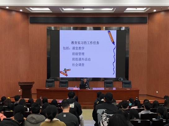 图 1 bevictor伟德张晓峰老师为顶岗实习生们进行《顶岗实习工作(任务)》培训