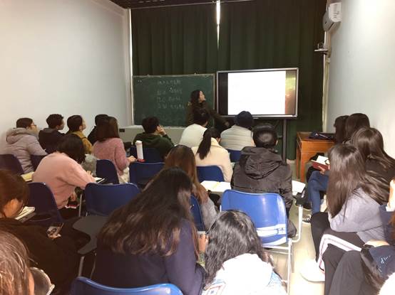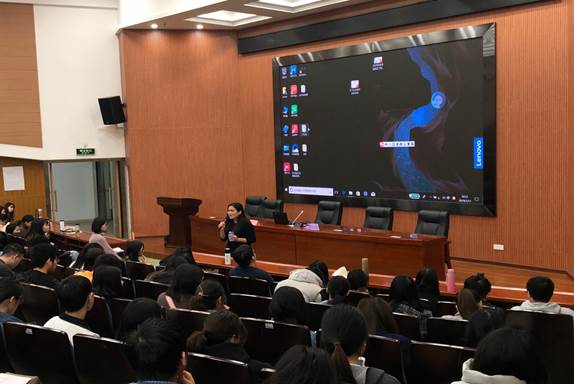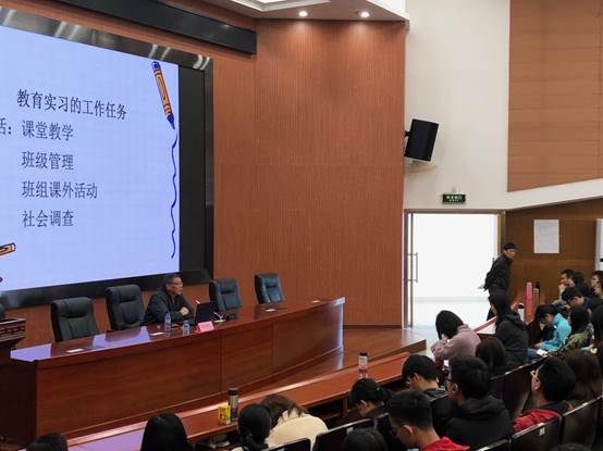 图 8 中山市第一中学林婉燕副董事长为顶岗实习生们开展《班级管理与班组活动》讲座