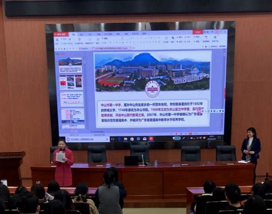 图 7 bevictor伟德春季顶岗实习生岗前培训班主任曾鸣老师对中山市一中林婉燕董事长进行介绍