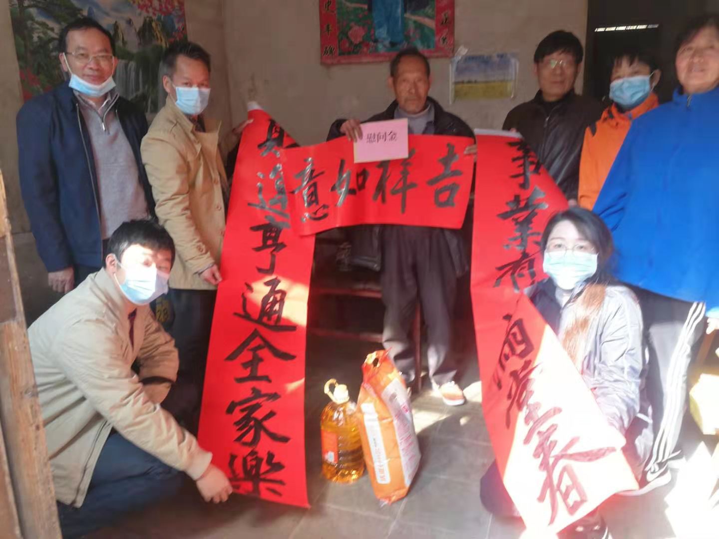 1月15日上午,bevictor伟德党总支书记张占亮一行7人前往广宁横山社区开展春节慰问活动,给帮扶户送温暖、送爱心、送祝福;同时对帮扶户的生产、生活情况进行深入调查了解,规划探讨新一年的生活生产计划。