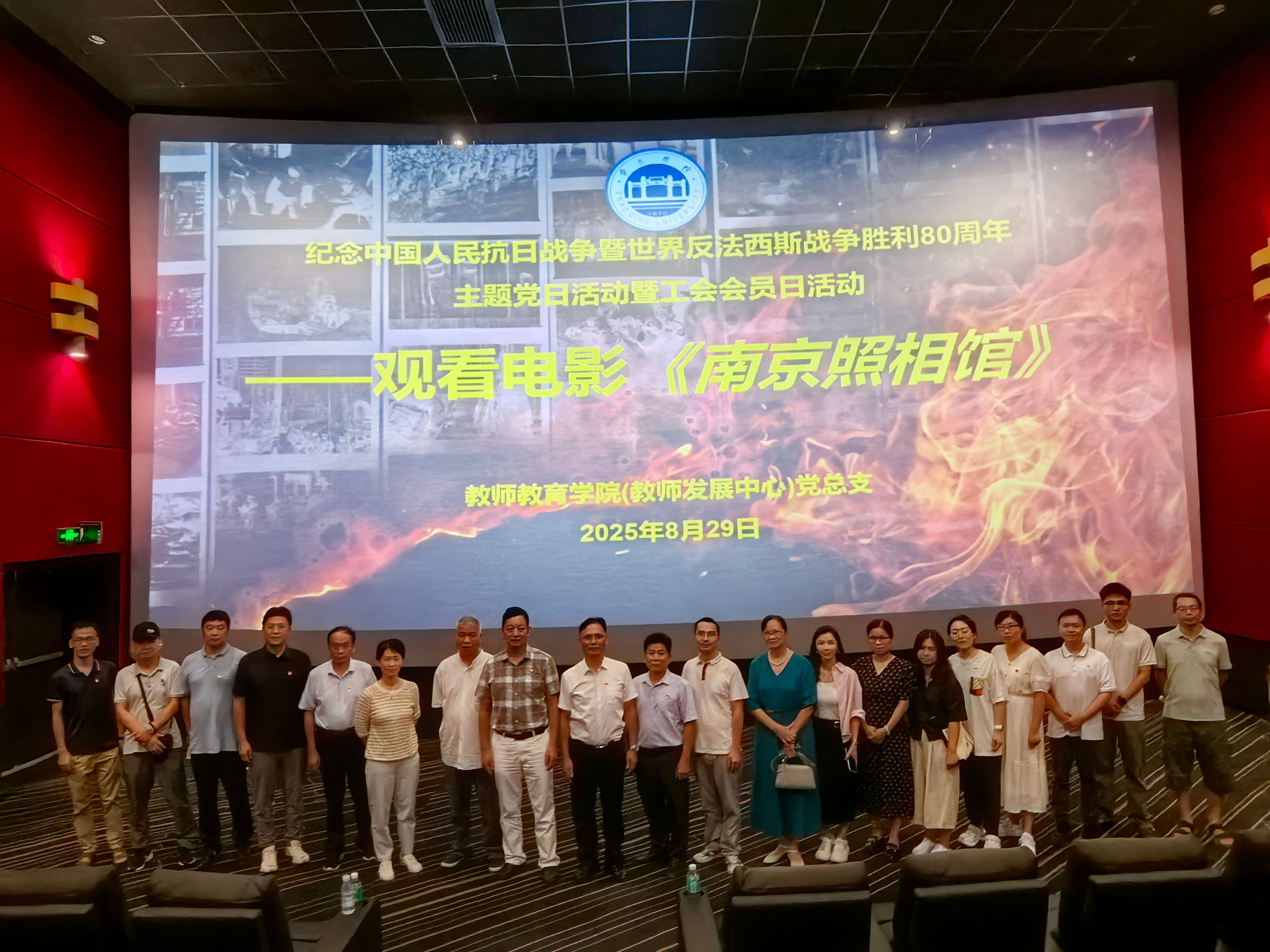 8月29日下午,bevictor伟德(教师发展中心)党总支组织开展了“纪念中国人民抗日战争暨世界反法西斯战争胜利80周年”主题党日活动暨工会会员日活动。本次活动以爱国主义教育为核心,通过集中观看爱国主题电影《南京照相馆》,引导教职工回顾历史、缅怀先烈,进一步激发爱国情怀与责任担当。
