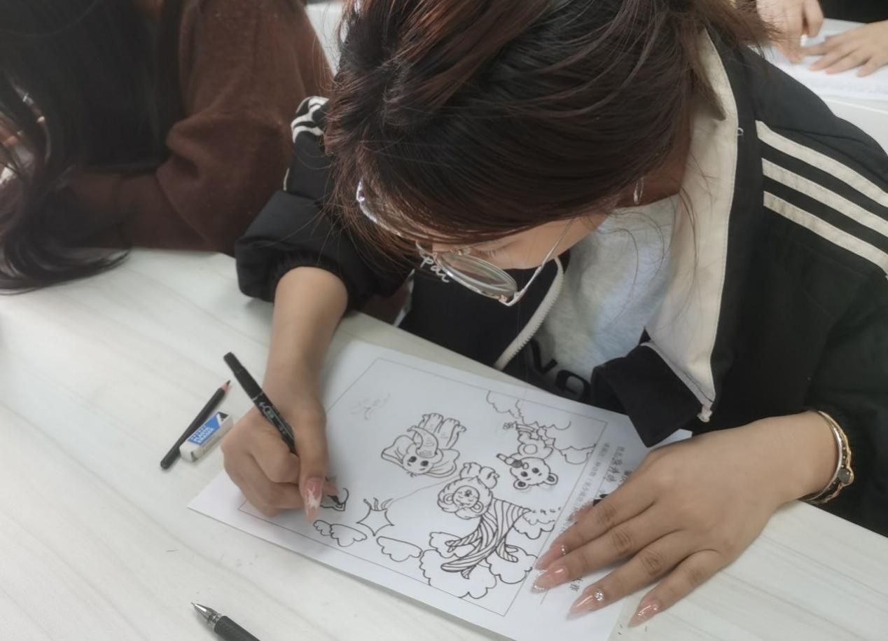 钢笔字比赛中,选手们须在15分钟内现场书写指定内容,字迹清晰、笔力遒劲,展现了良好的书法基础。简笔画比赛环节中,选手们根据文字提示迅速构思、现场作画,展现了创意与技艺的结合。粉笔字比赛则在板书长廊进行,选手们须在10分钟内完成作品,字形优美、结构严谨,体现了规范汉字书写能力。