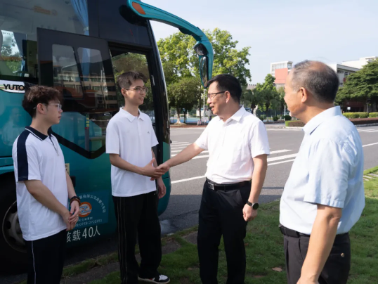 仪式结束后,校领导、职能部门和二级公司负责人来到车辆跟前为即将踏上实习之旅的同学们送行,同学们带着领导和老师的期望,开始了他们的实习新征程。