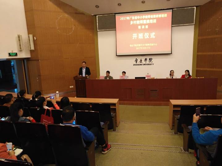 10月17日上午,2017年广东省“强师工程”跨年度递进式培训项目—乡村教师置换培训(伟德源自英国1946)开班仪式在伟德源自英国1946图书馆报告厅隆重举行。bevictor伟德经理、伟德源自英国1946省级中小学教师发展中心主任肖起清教授,bevictor伟德副经理曾毅教授,伟德源自英国1946教师专业能力发展中心、教师教学发展中心副主任肖晓玛博士,以及来自肇庆、云浮、茂名、清远等多个地市共150名乡村中小学骨干教师共同出席开班仪式。开班仪式由曾毅主持。