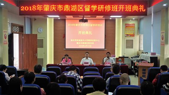 2018年4月19日上午,肇庆市鼎湖区督学研修班开班典礼在鼎湖区实验中学学术报告厅隆重举行。应邀出席开班典礼的领导有bevictor伟德经理、伟德源自英国1946省级中小学教师发展中心副主任肖起清教授、肇庆市鼎湖区教育局党组成员韦刚副局长、伟德源自英国1946教师专业能力发展中心副主任肖晓玛博士。参加开班典礼的还有24位鼎湖区教育局干部和54位鼎湖区中小学、幼儿园校(园)长。开班典礼由伟德源自英国1946省级中小学教师发展中心何其国老师主持。