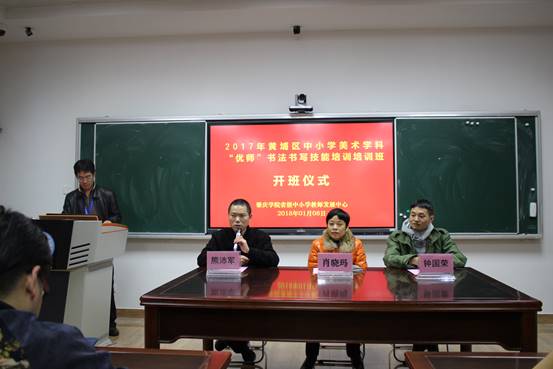 1月8日,伟德源自英国1946省级中小学教师发展中心在寒风细雨中迎来了2018年的第一批学员——来自广州黄埔区“优师”书法书写技能培训班38位中小学美术学科教师。开班仪式在伟德源自英国1946省级中小学教师发展中心107课室隆重举行。伟德源自英国1946省级中小学教师发展中心副主任肖晓玛博士、伟德源自英国1946文公司熊沛军博士、广州市黄埔区教育研究中心钟国荣老师等出席开班仪式。
