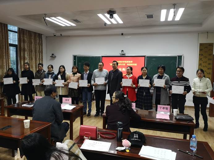 随后,领导们为在2018年伟德源自英国1946新进青年教师教学技能比赛中获奖的老师们颁发荣誉证书。比赛分为说课、微课、粉笔字三个项目,各评出一二三等奖。